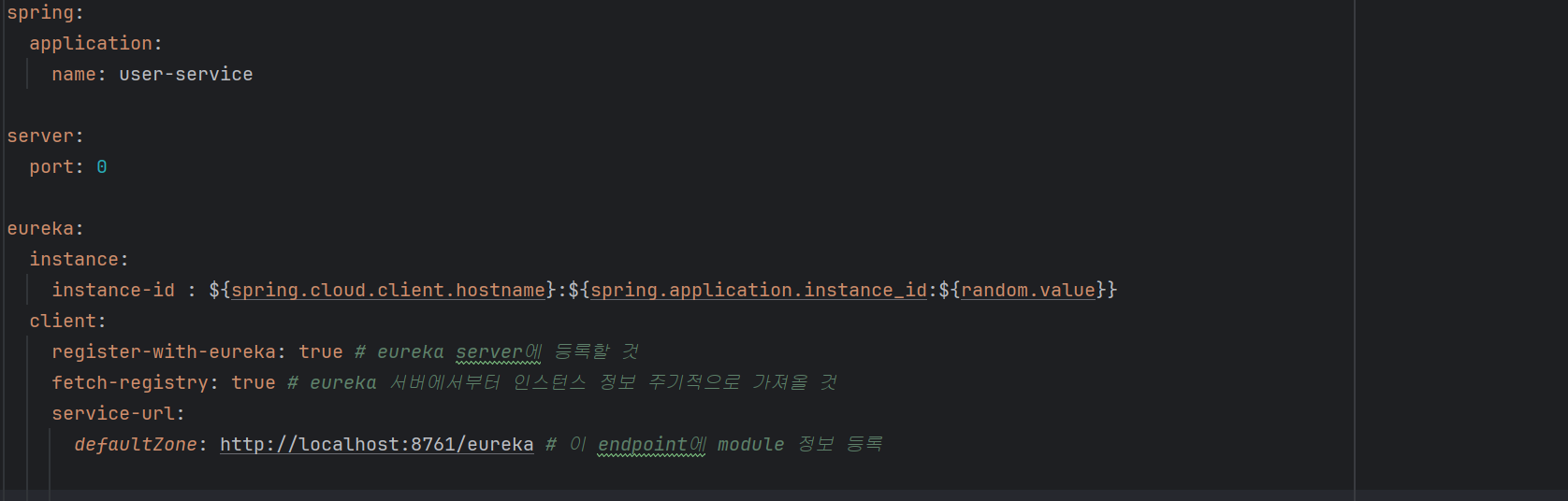 따라서 아래처럼 서버 포트가 랜덤하게 지정될 수 있도록 0번을 쓰고, instance-id를 작성해주자