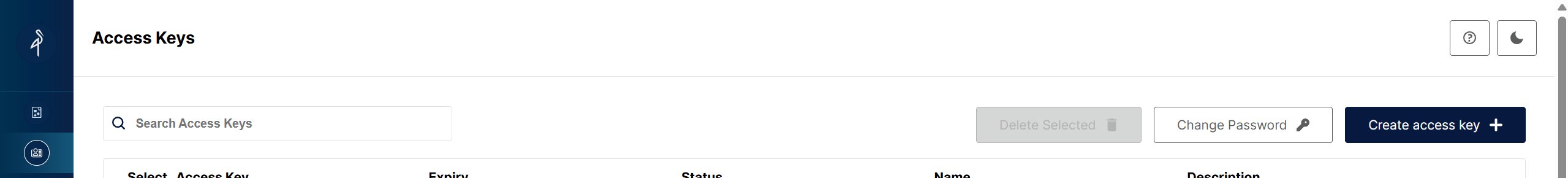 ACCESS_KEY와 SECRET_KEY 는 minio 접속 후 좌상단 두 번째 항목에서 생성할 수 있다.