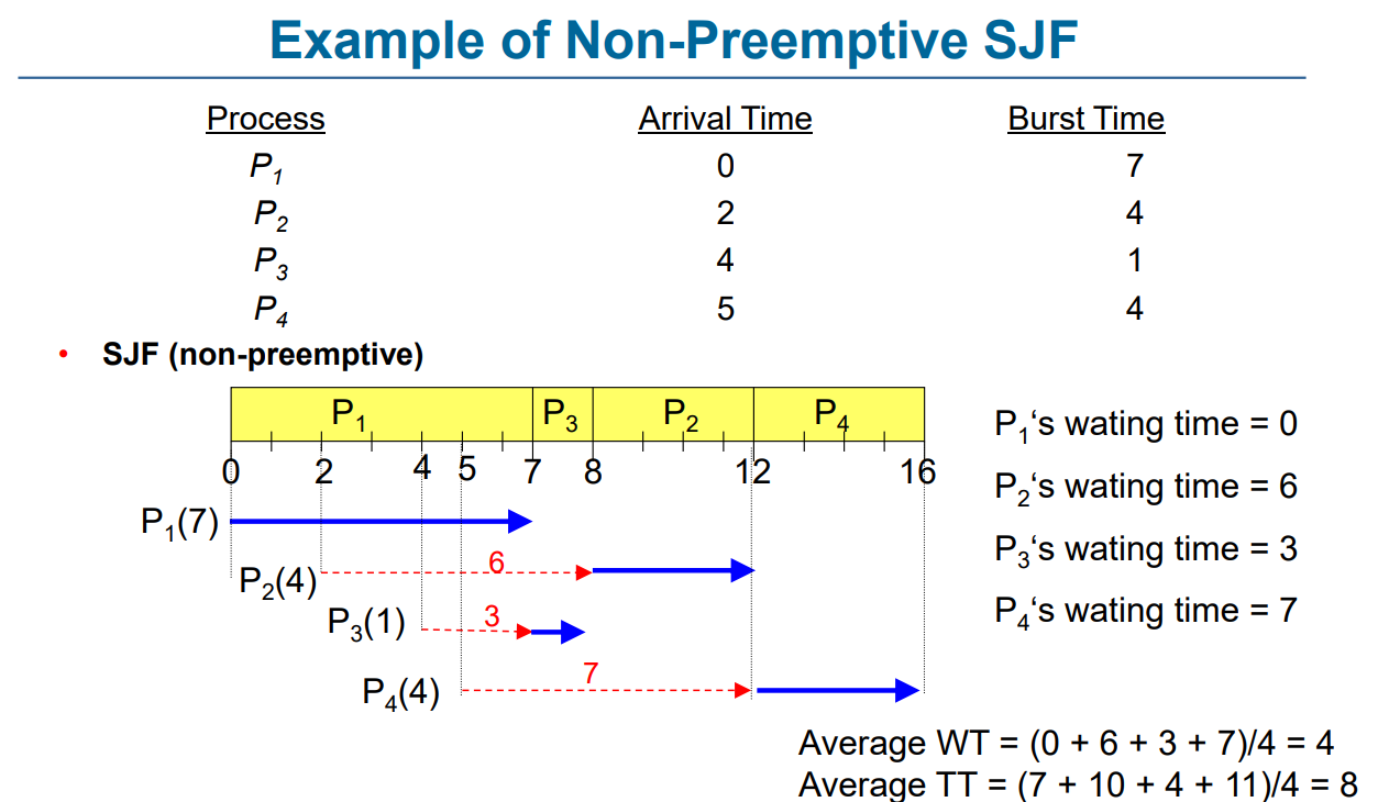 위 슬라이드는 Non-Preemptive SJF의 예시입니다.