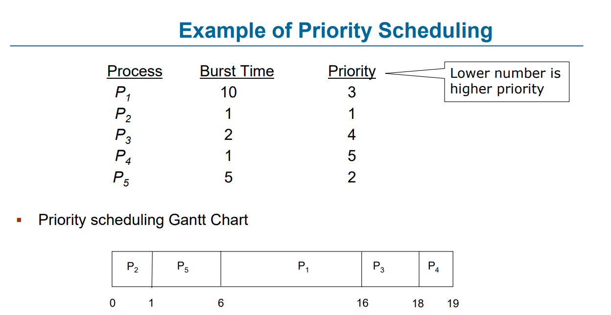예시를 보겠습니다. 위 예시의 경우 Priority의 숫자가 낮을수록 높은 Priority를 가집니다. 즉, P2가 가장 높은 Priority를 가지고 P4가 가장 낮은 Priority를 가집니다. (숫자가 높을수록 높은 Priority를 가질 수 있습니다. 문제에 따라 다릅니다.)